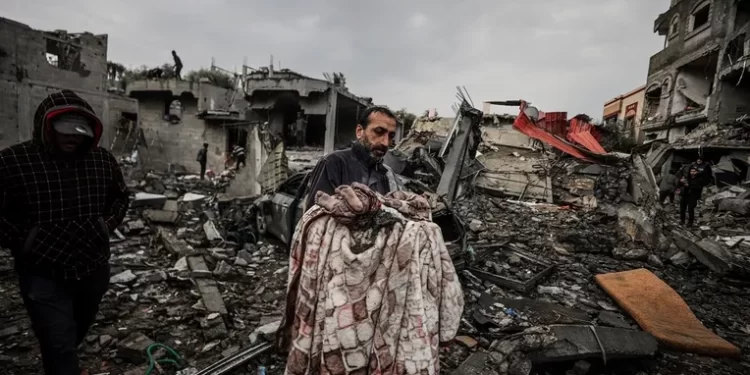 ووفقا لأحدث إحصائيات وزارة الصحة الفلسطينية في غزة، فقد استشهد 26900 فلسطيني، في حين أصيب 65949 آخرون، 70 بالمئة من الضحايا من النساء والأطفال.