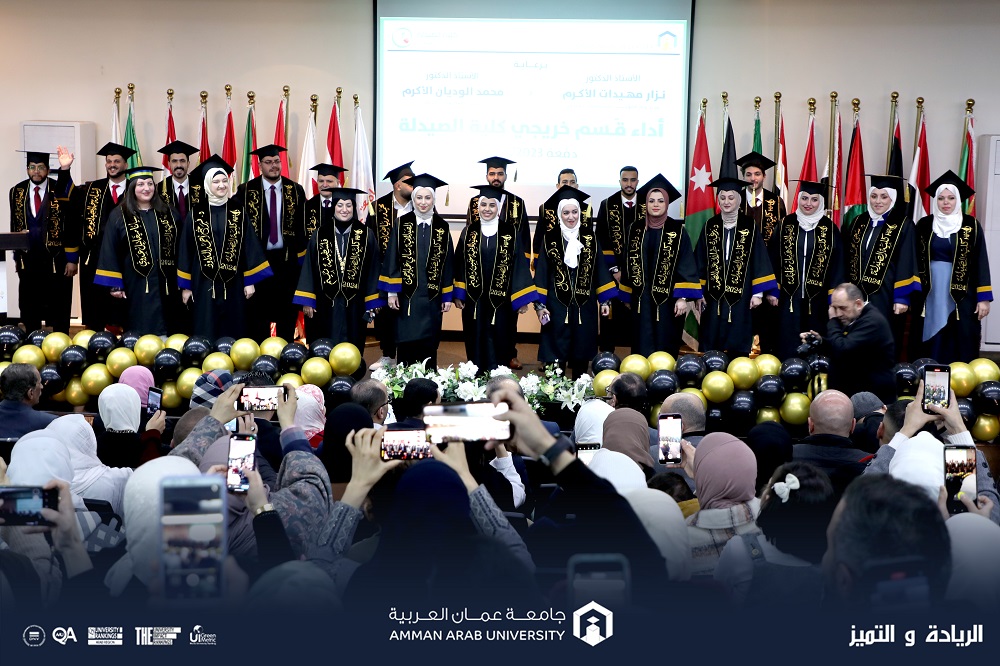 رعى عطوفة المدير العام للمؤسسة العامة للغذاء والدواء الأستاذ الدكتور نزار مهيدات ورئيس جامعة عمان العربية الأستاذ الدكتور محمد الوديان حفل أداء القسم لخريجي كلية الصيدلة في جامعة عمان العربية وذلك بحضور نائب رئيس الجامعة للشؤون الأكاديمية الأستاذ الدكتور إسماعيل يامين وعميد كلية الصيدلة الأستاذ الدكتورة رنا أبوحويج وعمداء الكليات في الجامعة وأعضاء الهيئتين التدريسية والإدارية وأعضاء المجلس الاستشاري في كلية الصيدلة ووفد من المؤسسة العامة للغذاء والدواء وأهالي الطلبة الخريجين.