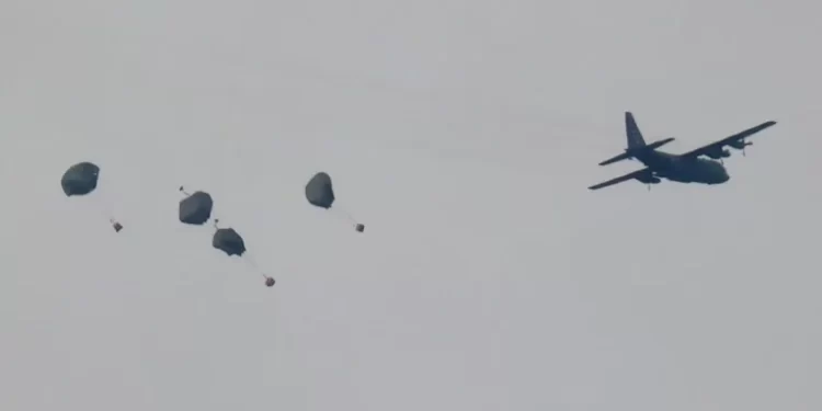 من جهتها نقلت شبكة “إن بي سي ” عن مسؤولين أمريكيين قولهم، إن ثلاث طائرات شحن أمريكية أسقطت 66 حزمة مساعدات و38 ألف وجبة غذاء في أول عملية إنزال جوي للبلاد في غزة.