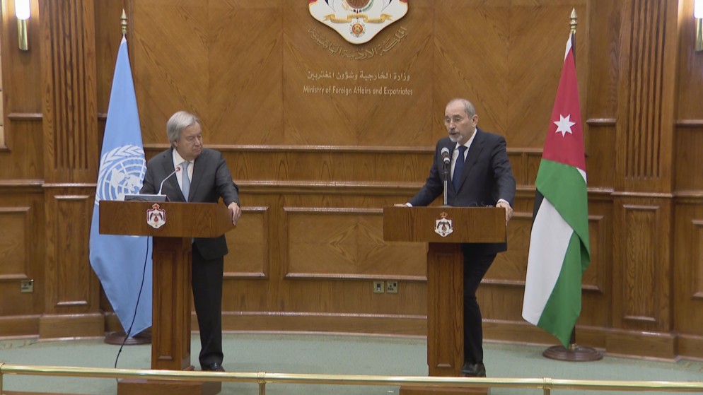 وأكد خلال مؤتمر صحفي مع الأمين العام للأمم المتحدة أنطونيو غوتيريش في عمّان، أن “لا شيء يبرر حرمان النساء والرجال والأطفال من الحصول على حقهم في الغذاء”، موضحا أن التصنيف المرحلي لسوء التغذية يؤكد أن هناك الملايين من الأشخاص الذين يعانون من المجاعة.