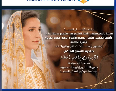 ممثلة برئيس مجلس الأمناء الدكتور عمر مشهور حديثة الجازي وأعضاء المجلس ورئيس الجامعة الأستاذ الدكتور محمد الوديان وأسرة الجامعة