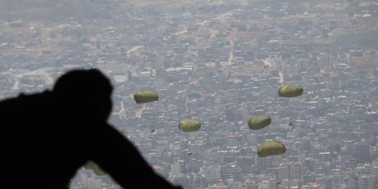 واشتملت الإنزالات الجوية على مساعدات إغاثية وإنسانية لمساندة الأهل في قطاع غزة، جراء الحرب الإسرائيلية المستمرة على القطاع.