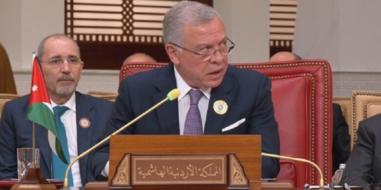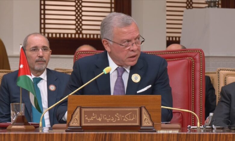 وترأس جلالة الملك الوفد الأردني المشارك في أعمال القمة، الذي ضم نائب رئيس الوزراء وزير الخارجية وشؤون المغتربين أيمن الصفدي، ومدير مكتب جلالة الملك، جعفر حسان، ومندوب الأردن الدائم لدى جامعة الدول العربية السفير أمجد العضايلة، والسفير الأردني لدى المنامة رامي وريكات.