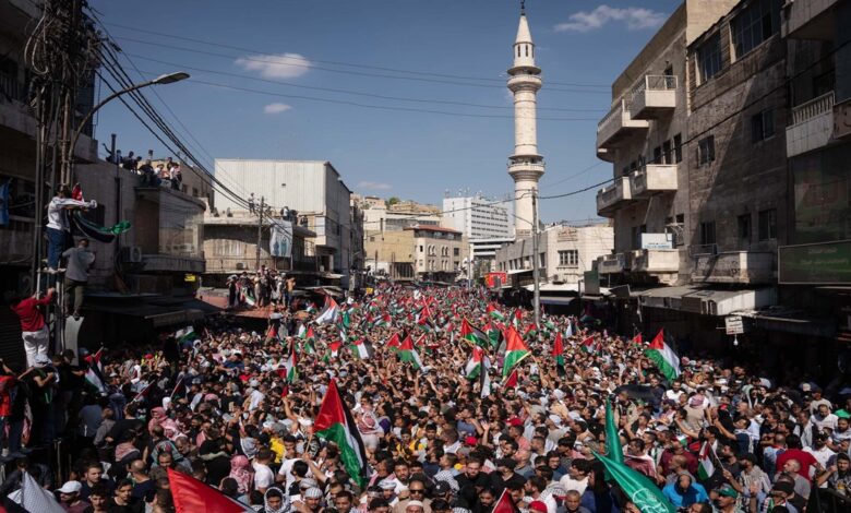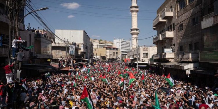نظمت فعاليات شعبية وحزبية وشبابية في العاصمة عمّان بعد صلاة الجمعة، مسيرة دعمًا لغزة وتنديدًا بالصمت الدولي إزاء الجرائم التي ترتكبها قوات الاحتلال الإسرائيلي في قطاع غزة التي راح ضحيتها آلاف الشهداء والجرحى جلهم من الأطفال والنساء.