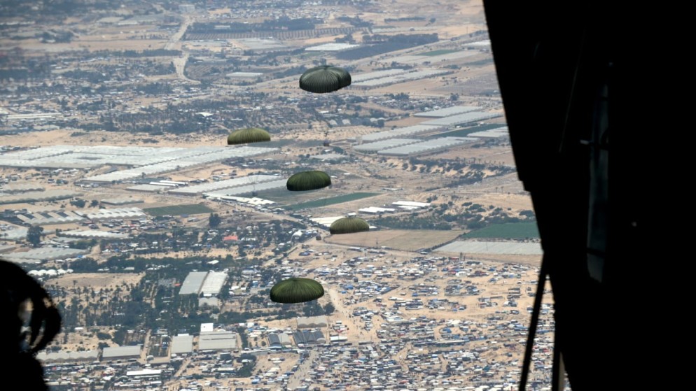 نفّذت القوات المسلحة الأردنية – الجيش العربي، اليوم الخميس 13 حزيران 2024، إنزالين جويين لمساعدات إنسانية وغذائية استهدفت عدداً من المواقع جنوب قطاع غزة.