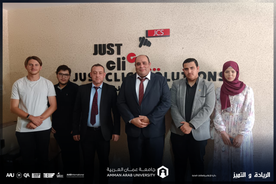 حيث هدفت هذه الزيارة إلى إتاحة الفرصة للطلبة للتعرف عن كثب على بيئة العمل المهنية في شركة Just Click Solutions، واكتساب خبرات عملية من خلال الاطلاع على أنشطة ومهام ومشاريع ومنتجات الشركة في مجال البرمجة والأمن السيبراني، وحظي الطلبة خلال الزيارة العلمية بلقاء المؤسس والرئيس التنفيذي لشركة Just Click Solutions المهندس حسان القضاة، الذي رحب بالطلبة وأعرب عن سعادته بتعاون الشركة مع جامعة عمان العربية، مؤكدًا على التزام الشركة بتعزيز التعاون وتعزيز المعرفة مع القطاع الأكاديمي.