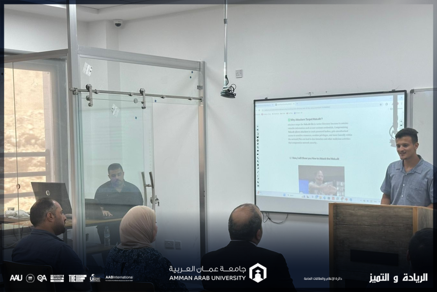نظّم قسم تكنولوجيا المعلومات في جامعة عمان العربية لقاءً تحفيزيًا لطلبة تخصص الأمن السيبراني في كلية العلوم الحاسوبية والمعلوماتية في الجامعة، بهدف تعزيز روح الإنجاز لدى طلبة الأمن السيبراني، وتحفيزهم على بذل المزيد من الجهد لتطوير مهاراتهم وقدراتهم في هذا المجال الحيوي.