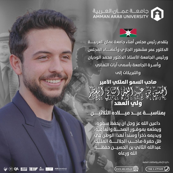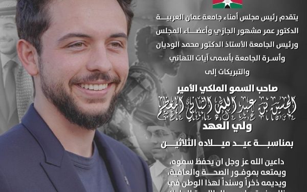 يتقدم رئيس مجلس أمناء جامعة عمان العربيـــة الدكتور عمر مشهور الجازي وأعضـــاء المجلس