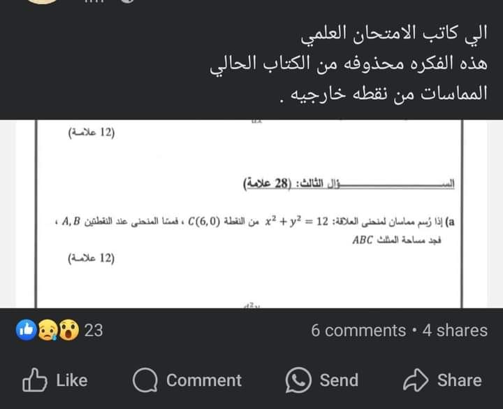 واضاف في تصريحات صحافية، أنه بخصوص امتحان الرياضيات للفرع العلمي / الورقة الأولى / الامتحان العام 2024، السؤال الثالث / الفرع (a) فإن فكرة السؤال محاكاة للأفكار الواردة في الصفحتين (68) و (69) من كتاب الطالب، وبالتحديد الأسئلة ذوات الأرقام (30) و (41) و (45) و (47).