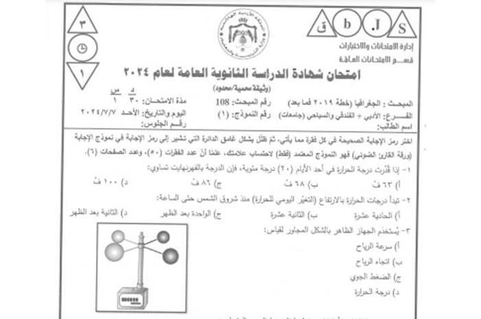 نشرت وزارة التربية والتعليم نموذج أسئلة امتحان مبحثي الجغرافيا وعلوم الارض والبيئة لعام 2024.