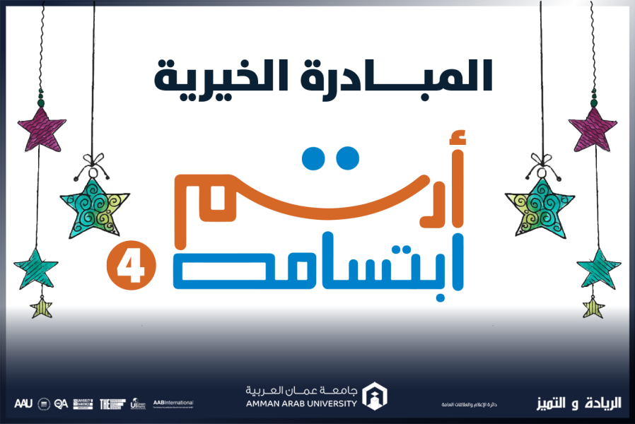 ضمن سلسلة المبادرات الخيرية التي انتهجتها كلية الأعمال في جامعة عمان العربية في السنوات الماضية، وتفعيلاً لدور الجامعة في الشراكة المجتمعية الهادفة، أطلقت كلية الأعمال في جامعة عمان العربية المبادرة الخيرية “أرسم ابتسامة 4” بمساهمة طلبة وأعضاء الهيئتين التدريسية والإدارية في الجامعة وذلك من خلال التبرع بمستلزمات العيد تضمنت (الملابس، الاحذية، العاب للأطفال، حلويات للعيد ، مواد غذائية متنوعه)، والتي تم توزيعها على (130) أسرة في عدة مناطق هي: لواء عين الباشا، ومخيم البقعة، وقرية أبو حامد، ولواء المزار الشمالي بالتعاون مع مركز لواء المزار الشمالي للخدمات المجتمعية، ، حيث كان لهذه المبادرة دوراً هاماً في تعزيز التكافل الإنساني ورسم الابتسامة على وجوه المستفيدين، وثمّن القائمون في مختلف المناطق على الدور الإنساني لجامعة عمان العربية من خلال غرس قيم التكافل التي تؤمن بها الجامعة، والتي تسعى لغرسها لدى طلبتها.