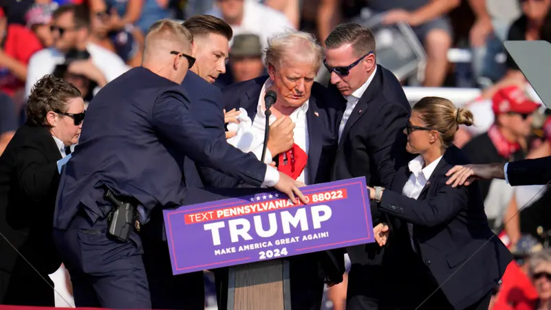 وقال جهاز الخدمة السرية إن الرئيس السابق المرشح الجمهوري لانتخابات الرئاسة الأميركية، أصيب برصاصة في أذنه، السبت، في هجوم أدى إلى مقتل أحد المشاركين في التجمع وإصابة اثنين آخرين، فضلا عن تحييد المهاجم.