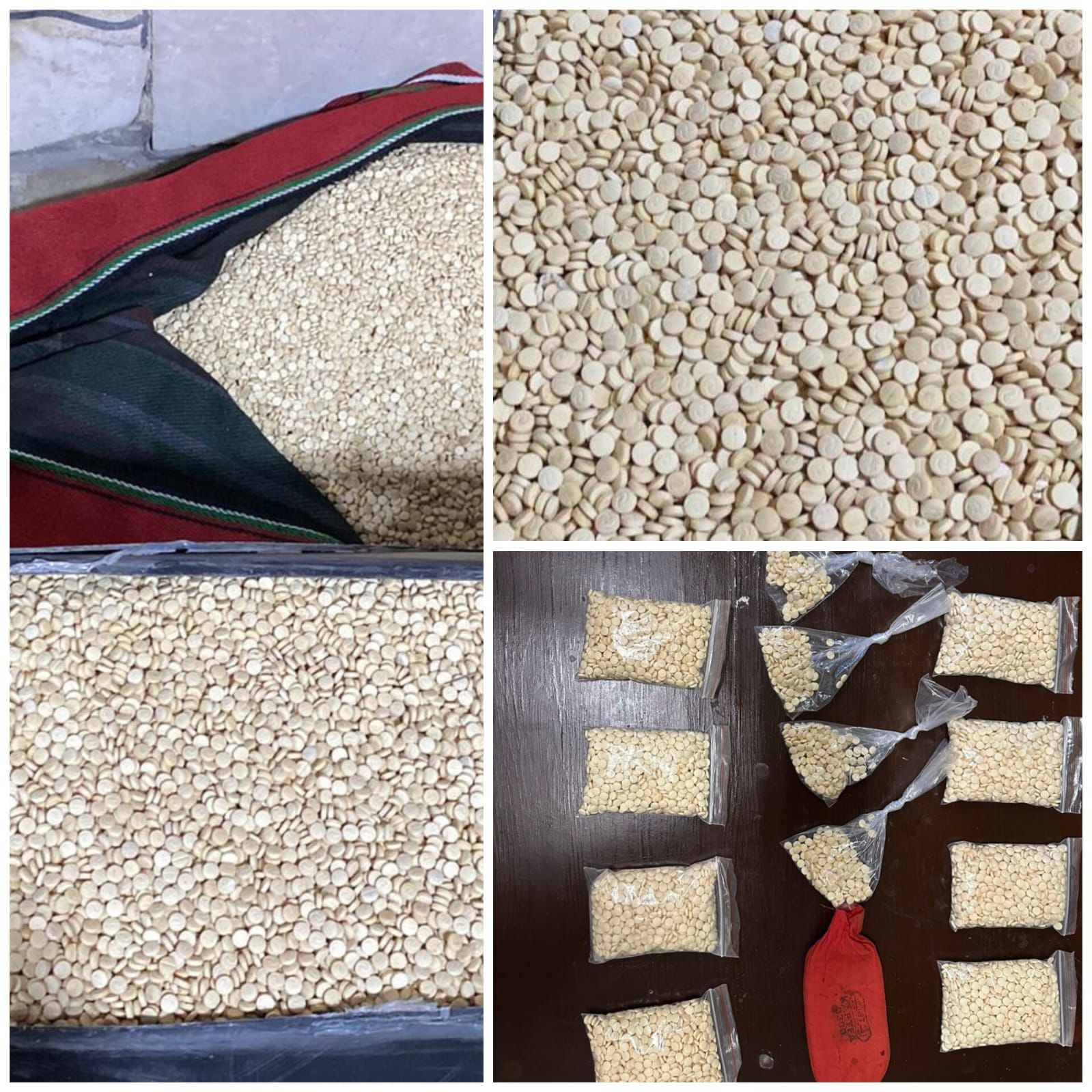 فيما وردت في القضية الثانية معلومات حول قيام شخصين بتجهيز كميات من الحبوب المخدرة ووضعها بمخبأ سري بإحدى مركبات الشحن تهميدا لتهريبها لدولة مجاورة حيث جرى من خلال التحقيقات تحديد هوية الشخصين ومكان وموعد نقلهما للحبوب المخدرة في محافظة الزرقاء وجرت مداهمتهما أثناء توجههما للمعبر الحدودي وأُلقي القبض عليهما وضبط داخل مخبأ سري 200 ألف حبة مخدرة.