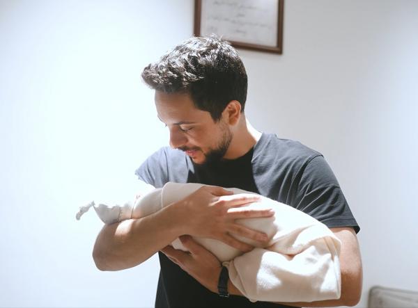 ونشر الديوان الملكي الهاشمي مقطع فيديو لولي العهد وهو يؤذن في أذن الأميرة الجديدة.