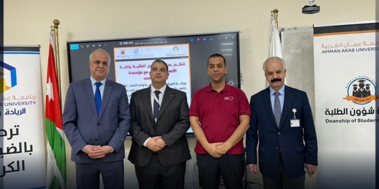 نظّمت مؤسسة ولي العهد – فرع البلقاء، بالتعاون مع عمادة شؤون الطلبة وكلية الأعمال في جامعة عمان العربية، جلسة تعريفية تهدف إلى تعريف طلبة الجامعة بمبادرات المؤسسة وأنشطتها المتنوعة، وأثرها في خدمة الشباب الأردني وتمكينه.