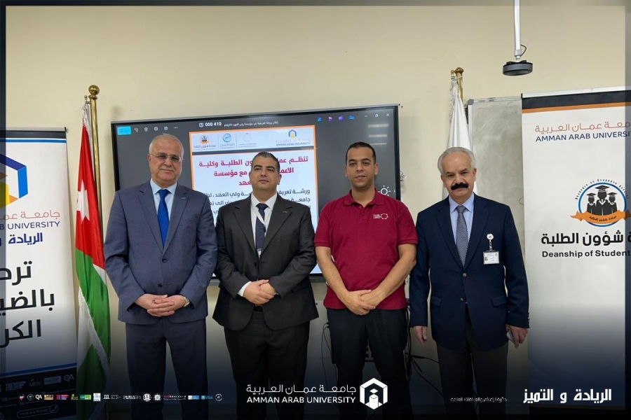 والجدير بالذكر بأن هذه الفعالية تأتي ضمن جهود جامعة عمان العربية في تعزيز شراكاتها المجتمعية، وحرصها على تزويد الطلبة بفرص تعلّم وتمكين تسهم في بناء قدراتهم وتطوير إمكانياتهم بما يتوافق مع متطلبات سوق العمل.