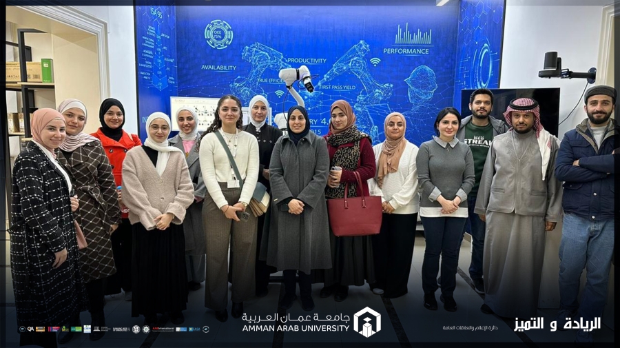 نظّمت كلية الصيدلة في جامعة عمان العربية زيارة ميدانية لطلبة برنامج الماجستير في تخصص “اليقظة الدوائية والشؤون التنظيمية” إلى مركز الابتكار الأردني للثورة الصناعية الرابعة(INJO4.0) أحد أبرز المؤسسات الوطنية المعنية بتعزيز الابتكار واستخدام التقنيات الحديثة في مختلف القطاعات الصناعية.