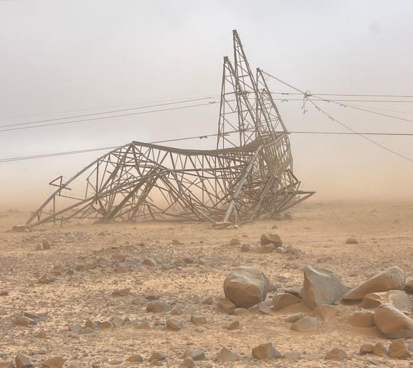 تسببت الرياح الشديدة في محافظة معان بسقوط عدد من أبراج الكهرباء الضغط العالي في منطقة الحسينية، اليوم الخميس.