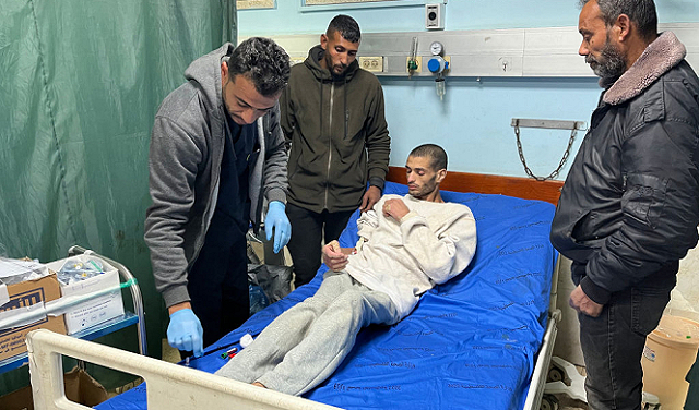 على سرير مجاور، يرقد الأسير المحرر ثابت أبو خاطر، وهو مسنٌّ أُفرج عنه من سجون إسرائيل بقدم مبتورة وأخرى متورمة تملؤها الزرقة، ما قد يجعله عرضة لخسارتها.