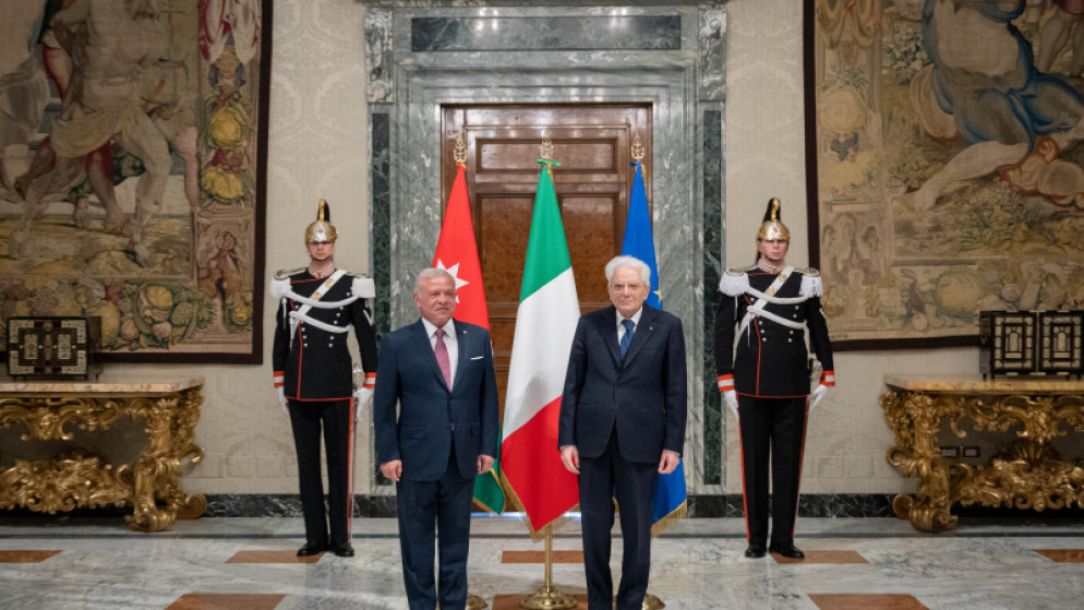 عقد جلالة الملك عبدالله الثاني في روما، الاثنين، لقاء مع الرئيس الإيطالي سيرجيو ماتاريلا، تناول علاقات الصداقة التاريخية بين البلدين، والمستجدات الإقليمية.
