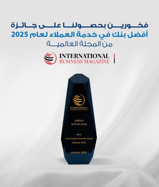 أعلن البنك الأردني الكويتي عن فوزه بجائزة “أفضل بنك في مجال خدمة العملاء في الأردن لعام 2025” من مجلة الأعمال الدوليةInternational Business Magazine ، وهي جائزة مرموقة تؤكد التزام البنك بتقديم تجارب مصرفية استثنائية وحلول مالية مصممة خصيصاً لتلبية احتياجات العملاء.