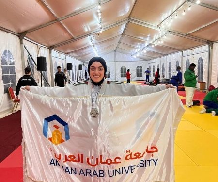 في إنجاز رياضي جديد يُضاف إلى سجل طلبة جامعة عمان العربية، حصلت الطالبة نجلة شادي وشاح من تخصص الموارد البشرية في كلية الأعمال على الميدالية الفضية والميدالية البرونزية ضمن منافسات بطولة العرب للجودو لفئتي الشابات والسيدات، وذلك خلال البطولة التي جرت برعاية أمين عمان الكبرى الدكتور يوسف الشواربة وبحضور بحضور السفير الياباني في الأردن أساري هيديكي، ورئيس الاتحاد الأردني للجودو المهندس سلطان العواملة، ورئيس الاتحاد الآسيوي للجودو عبيد العنزي، ورئيس الاتحاد العربي للجودو نعمان شاهر، ونائب أمين عمان محمد القيسي، وممثلي الدول المشاركة ، والتي عقدت في صالة الأميرة سمية بمدينة الحسين للشباب.