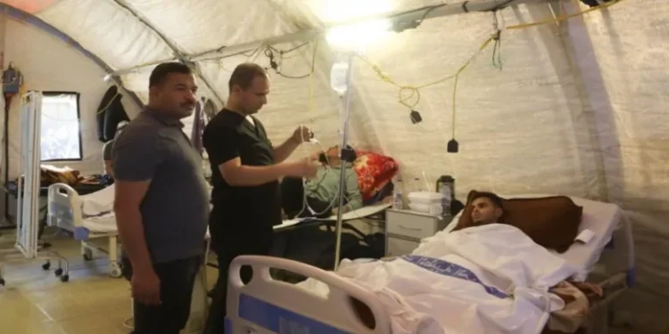 تنفيذاً للتوجيهات الملكية السامية، وحرصاً على تقديم الدعم والمساعدة للأشقاء في قطاع غزة والتخفيف من معاناتهم، باشرت طواقم ومرتبات المستشفى الميداني الأردني جنوب غزة/6 اليوم الإثنين، أعمالها باستقبال المرضى والمراجعين لتقديم الخدمات الطبية والعلاجية والإنسانية لهم جرّاء الحرب التي يشهدها القطاع.