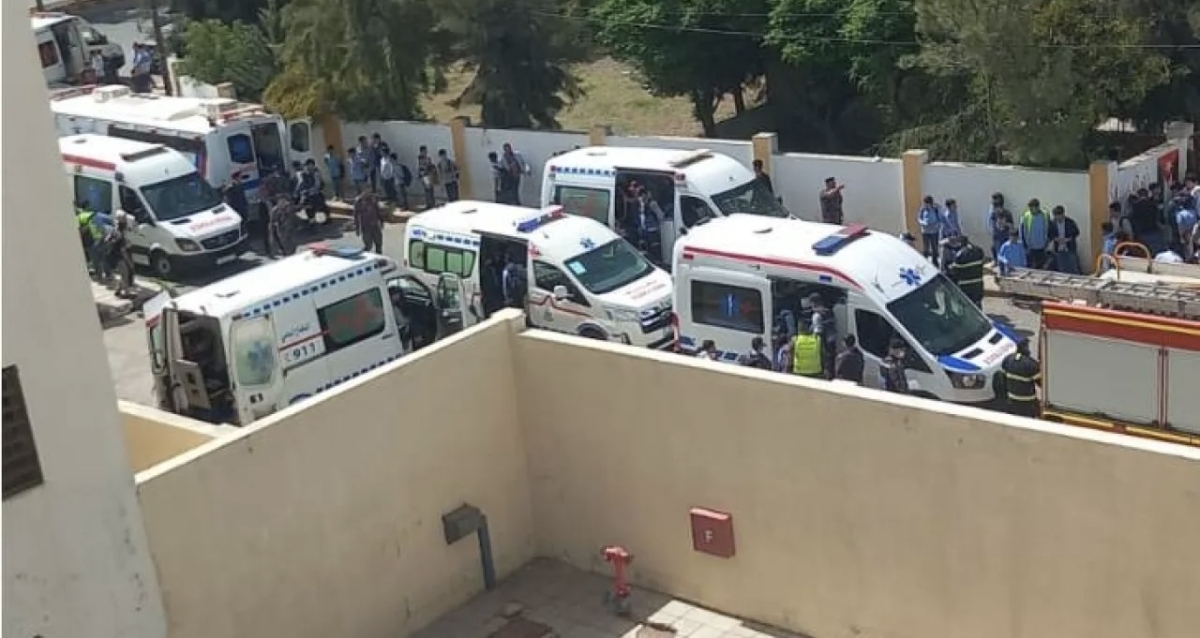 أُصيب 13 طالبًا في إحدى المدارس الأساسية بمنطقة المقابلين في العاصمة عمّان، اليوم الثلاثاء، بحالات ضيق تنفس نتيجة تسرب غاز من ورشة صناعية محاذية للمدرسة. فإن التسرب وقع من أحد الكراجات في المنطقة الصناعية القريبة من المدرسة، مما أدى إلى تصاعد أبخرة تسببت بحالات اختناق بين الطلبة، خصوصًا ممن يعانون من أمراض تنفسية مزمنة مثل الربو والحساسية. وسارعت فرق الإسعاف إلى موقع الحادث، حيث قُدمت الإسعافات الأولية للطلبة، وتم تصنيف الحالات، ونقل 13 طالبًا إلى المستشفى لمتابعة حالتهم الصحية.