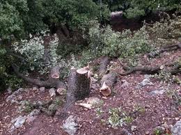 ويُظهر المقطع عددًا من الأشجار التي تعرضت للتقطيع والإتلاف، الأمر الذي يعتبر مساس بالثروة الوطنية والبيئية.