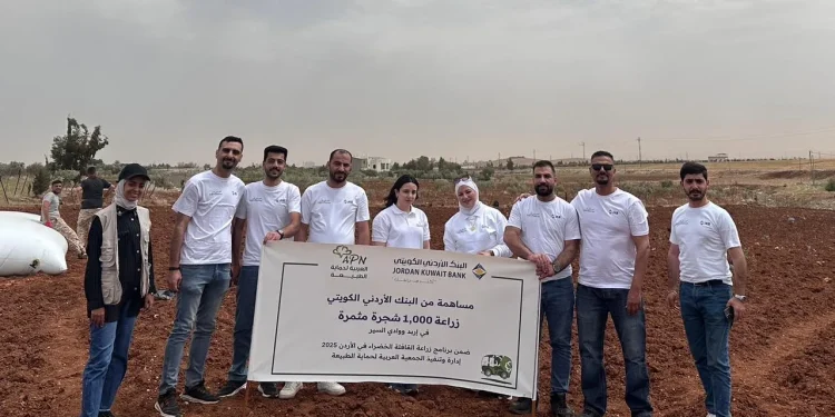 قام عدد من موظفي وموظفات البنك الأردني الكويتي بالتطوع في حملة الزراعة الخامسة في محافظة إربد منطقة النعيمية، ضمن مبادرة القافلة الخضراء المنبثقة عن “الجمعية العربية لحماية الطبيعة”، حيث يمثل هذا النشاط جزءاً من مسؤولية البنك المجتمعية، وترجمة لأهداف التنمية المستدامة والتي تُعنى بشؤون البيئة، والحد من التصحر، والأمن الغذائي، ورفع الوعي المجتمعي بأهمية الزراعة والتطوع، وتوفير مصدر دخل للمزارعين.