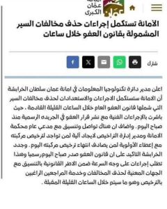 نفى الناطق الإعلامي بأسم أمانة عمان د. ناصر الرحامنة، ما يتم تداوله عبر وسائل التواصل الإجتماعي من قرار الأمانة بحذف مخالفات السير بسبب ما وصفوه “بالعفو العام عن المخالفات”. وأكد الرحامنة أن كل ما يتم تدوله عارٍ عن الصحة، مبيناً أنها مجرد اشاعات مغرضة لتشويش المواطنين. ويشار إلى أنه تم تداول اشاعات خلال الايام الماضية، من قبل مجموعة من الأشخاص عبر مواقع التواصل الإجتماعي بالتزامن مع ذكرى عيد الاستقلال، يفيد بقرار “شطب أمانة عمان مخالفات السير بمناسبة عيد الاستقلال”. وتاليا المنشور