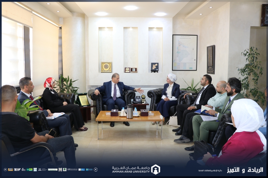 واستعرض الدكتور الوديان بحضور كلّ من : السيدة نادية القديمات مساعد الرئيس للشؤون المالية الإدارية، والدكتور سامر عياصرة مدير مركز الإبداع والابتكار وريادة الاعمال، والسيد حاتم قشوع مدير دائرة الشؤون المالية، والسيدة مي جرادات مديرة مركز الاستشارات والتدريب، والسيد يوسف الخالد من مركز الإبداع والابتكار وريادة الاعمال في جامعة عمان العربية، نبذه عن رؤية جامعة عمان العربية ورسالتها وكليات الجامعة وتخصصاتها المختلفة والفريدة من نوعها ككلية علوم الطيران، وكلية العلوم الطبية التطبيقية، وتخصص ماجستير اليقظة الدوائية والشؤون التنظيمية، وتخصص ماجستير التحكيم وفض النزاعات التجارية، وتخصص ماجستير الإدارة الاستراتيجية والتي تتواكب مع متطلبات سوق العمل وتلبي حاجة السوق المحلي والإقليمي.