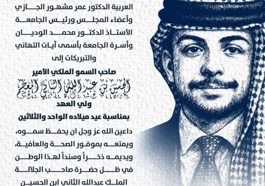 داعين الله عز وجل ان يحفظ سموه، ويمتعه بموفـور الصحـــة والعافية، ويديمه ذخراً وسنداً لهذا الوطن في ظل حضرة صاحـــب الجلالــــة الملــك عبدالله الثاني ابن الحسيــن حفظـــه الله ورعاه