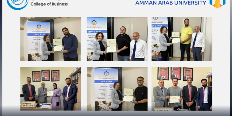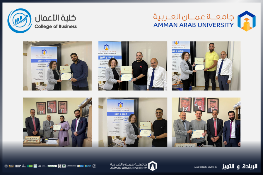انسجاماً مع رؤية ورسالة جامعة عمّان العربية الهادفة إلى تعزيز الإبداع والريادة وترسيخ مفاهيم التنمية المستدامة لدى الطلبة اختتمت كلية الأعمال في الجامعة فعالية “مسابقة الاستدامة والريادة والإبداع” والتي نُظّمت بالتعاون مع نادي طلبة الكلية وقسم التسويق الرقمي ضمن سلسلة من الأنشطة الهادفة إلى تمكين الطلبة وتفعيل دورهم في معالجة القضايا المجتمعية من خلال أدوات التسويق الرقمي والتصميم الإبداعي، وبمشاركة متميزة من طلبة الكلية بمختلف تخصصاتهم حيث قدّموا أعمالًا نوعية وتصاميم مبتكرة عكست مدى وعيهم بمفاهيم ريادة الأعمال والاستدامة في بيئة الأعمال الحديثة.