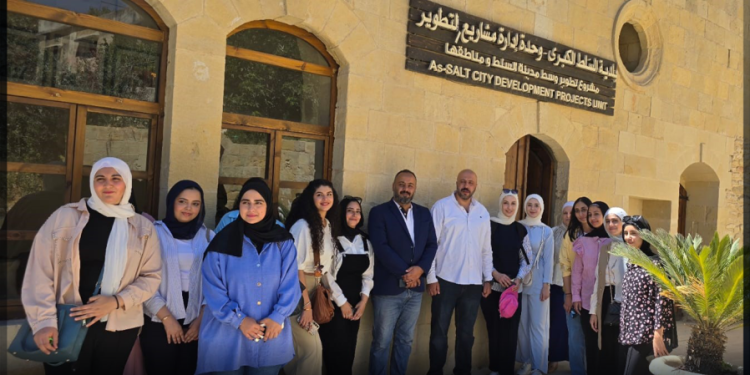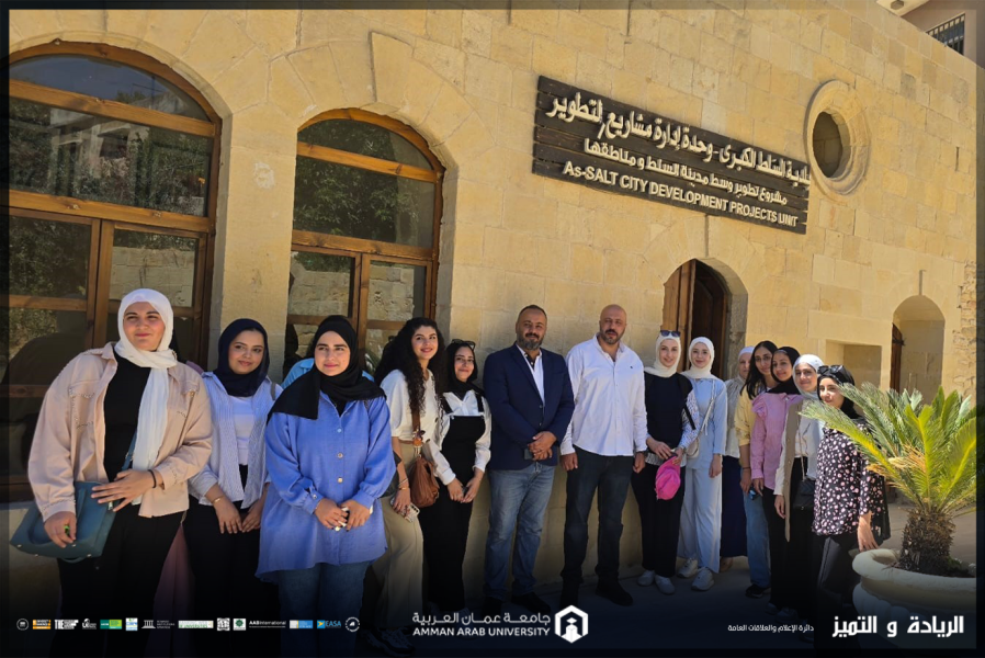 في إطار حرص جامعة عمان العربية على تعزيز الجانب التطبيقي والمعرفي لدى طلبتها، وضمن توجهات الأستاذ الدكتور محمد الوديان رئيس جامعة عمان العربية، وبدعم من الدكتور أنور العساف عميد كلية الهندسة الدكتور أنور العساف، نفذ قسم هندسة العمارة في كلية الهندسة في جامعة عمان العربية زيارة ميدانية إلى مدينة السلط بالتعاون مع مجلس نقابة المهندسين الأردنيين – فرع محافظة البلقاء، وبالتنسيق مع اللجنة الاجتماعية في المجلس ، حيث استُقبل الوفد الطلابي في مقر النقابة من قبل المهندس عبد المحسن الخرابشة رئيس مجلس الفرع ، ومدير الفرع السيد ماجد العواملة، ورئيس اللجنة الاجتماعية المهندس مثنى عربيات، الذين رحّبوا بالطلبة ، مؤكدين لأهمية هذه الزيارات في تعزيز الصلة بين الطلبة والقطاع المهني، وتعريفهم بدور النقابة وخدماتها، إلى جانب إبراز القيمة الحضارية والتاريخية والتراثية لمدينة السلط.