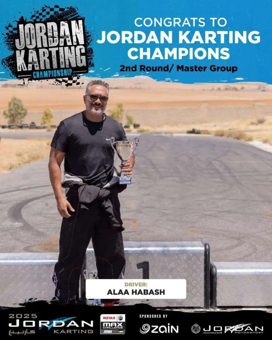 حقق المتسابق علاء حبش إنجازاً جديداً بتتويجه بلقب الجولة الثانية من بطولة الأردن لسباقات الكارتينغ – تحدي روتاكس ماكس تشالنج عن فئة ”الماستر”، والتي أُقيمت يوم الجمعة على حلبة منجا في محافظة مادبا، برعاية شركة زين الأردن.