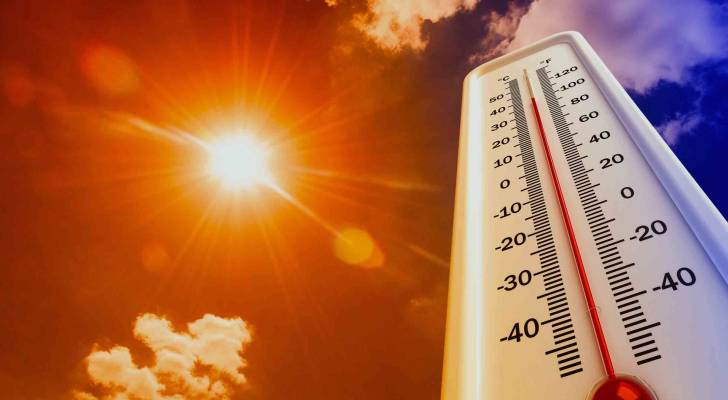 تسجل درجات الحرارة الثلاثاء، حول معدلاتها الاعتيادية لمثل هذا الوقت من السنة، ويكون الطقس صيفيا اعتياديا في اغلب المناطق، وحارا نسبيا في مناطق البادية، وحارا في الأغوار والبحر الميت والعقبة، مع ظهور بعض الغيوم على ارتفاعات منخفضة في شمال المملكة، وتكون الرياح شمالية غربية معتدلة السرعة تنشط على فترات. وتتراوح درجات الحرارة العظمى والصغرى في شرق عمان اليوم ما بين 33 – 20 درجة مئوية، وفي غرب عمان 31 – 18، وفي المرتفعات الشمالية 29 – 17, وفي مرتفعات الشراة 30 – 16, وفي مناطق البادية 37 – 21, وفي مناطق السهول 33 – 20, وفي الأغوار الشمالية 40 – 24, وفي الأغوار الجنوبية 42 – 27, وفي البحر الميت 41 – 26، وفي خليج العقبة 41 – 26 درجة مئوية. وبحسب تقرير ادارة الارصاد الجوية، يبقى الطقس يومي الاربعاء والخميس، صيفيا اعتياديا في اغلب المناطق، وحارا نسبيا في مناطق البادية، وحارا في الأغوار والبحر الميت والعقبة، وتكون الرياح شمالية غربية معتدلة السرعة تنشط احيانا. اما الجمعة، فيطرأ ارتفاع طفيف على درجات الحرارة، ويكون الطقس حارا نسبيا في اغلب المناطق، وحارا في البادية والأغوار والبحر الميت والعقبة، وتكون الرياح شمالية غربية معتدلة السرعة.