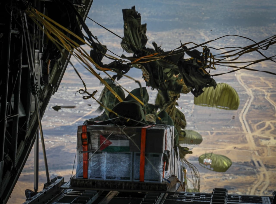 نفذت القوات المسلحة الأردنية، اليوم الاحد، عملية إنزال جوي إلى قطاع غزة، شاركت بالعملية بالإضافة إلى طائرات سلاح الجو الملكي الأردني، طائرات من كل من جمهورية ألمانيا و دولة الإمارات العربية المتحدة و مملكة بلجيكا و جمهورية فرنسا وجمهورية إيطاليا و مملكة هولندا ومملكة الدنمارك وجمهورية اندونسيا، حيث تم إسقاط نحو 106 أطنان من المواد الغذائية والإغاثية داخل القطاع. وبهذا الإنزال، يرتفع عدد العمليات التي نفذتها القوات المسلحة الأردنية منذ عودة الإنزالات في 27 تموز الماضي إلى 156 إنزالاً أردنياً، فيما بلغ إجمالي الإنزالات المنفذة بالتعاون مع دول شقيقة وصديقة 353 إنزالاً، ليبلغ مجموع المساعدات التي تم إسقاطها جواً من قبل سلاح الجو الملكي الأردني إلى نحو 772 طناً من المواد الإغاثية والاحتياجات الأساسية.