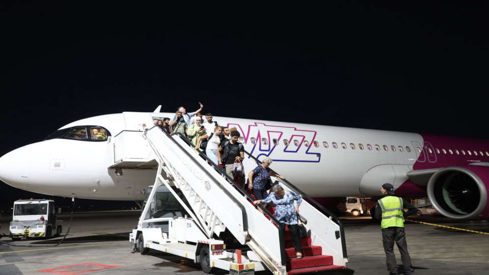 حطت في مطار الملكة علياء الدولي، السبت، طائرة تابعة لشركة “ويز إير” قادمة من العاصمة المَجريّة بودابست تحمل على متنها 184 سائحا، إيذانا بعودة رحلات الشركة إلى الأردن بمعدل رحلتين أسبوعياً على هذا الخط.