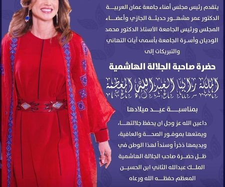يتقدم رئيس مجلس أمناء جامعة عمان العربيـــة الدكتور عمر مشهور حديثة الجازي وأعضـــاء المجلس ورئيس الجامعة الأستاذ الدكتور محمد الوديان