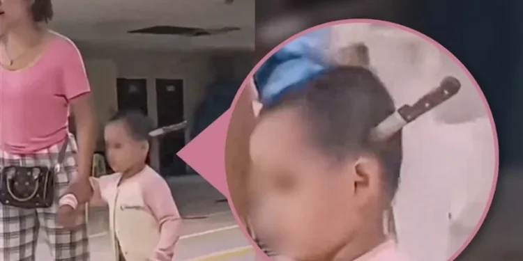 أثار مقطع مصوَّر من الصين صدمة واسعة على مواقع التواصل الاجتماعي، بعدما أظهر أمًّا تسير بهدوء إلى جانب ابنتها الصغيرة التي لم يتجاوز عمرها الثلاث سنوات، فيما كان سكين فواكه مغروساً في رأس الطفلة بشكل واضح.