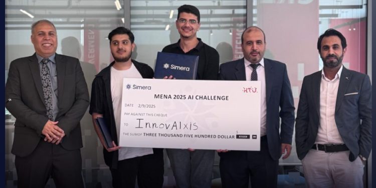 ضمن جهود جامعة عمان العربية في ترسيخ الريادة والتميز والابتكار لدى طلبتها، أحرزت كلية تكنولوجيا المعلومات في جامعة عمان العربية إنجازًا متميزًا بحصولها على المركز الثاني في مسابقة SIMERA-MENA 2025 AI Challenge، والتي عُقدت في جامعة الحسين التقنية بمشاركة أكثر من (140) فريقًا من الجامعات الأردنية الحكومية والخاصة وبتنظيم من شركة SIMERA العالمية للتوظيف، حيث تُعد هذه المسابقة من أبرز المسابقات المتخصصة في توظيف تقنيات الذكاء الاصطناعي في مجال التوظيف.