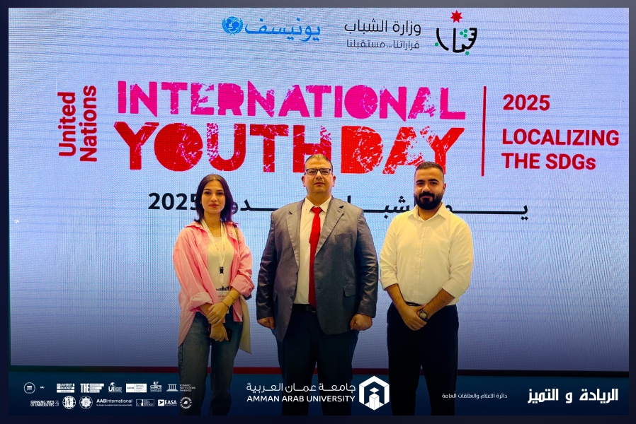 انطلاقاً من حرص جامعة عمان العربية على دعم الطلبة وتنمية قدراتهم، وبتوجيه من الأستاذ الدكتور محمد الوديان رئيس الجامعة شاركت عمادة شؤون الطلبة في احتفالية اليوم العالمي للشباب، وذلك برعاية معالي وزير الشباب الدكتور رائد العدوان، والتي أقيمت في قاعة عمّان الكبرى – مدينة الحسين للشباب بتنظيم من وزارة الشباب ومنظمة اليونيسف، وبحضور ممثلين عن المؤسسات الحكومية والخاصة والمنظمات الدولية، إضافة إلى مشاركة واسعة من شباب وشابات المملكة الأردنية الهاشمية.