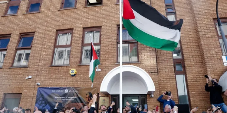 رفع، الاثنين، علم دولة فلسطين فوق مبنى السفارة الفلسطينية في لندن، بحضور عدد من السفراء، وممثلين عن الأحزاب. وقال السفير الفلسطيني لدى بريطانيا حسام زملط، إن رفع العلم الفلسطيني لا يمثل نهاية للنضال، لكنه خطوة جديدة نحو الحرية، وبعد قرن من الإنكار، اتخذت الحكومة البريطانية خطوة الاعتراف بدولة فلسطين. وأضاف زملط أن الاعتراف يشكل لحظة تاريخية وتحديا من أجل الحقيقية، ورفض الإبادة والاحتلال، ومحاولات محو الهوية الفلسطينية. وتابع أن الاعتراف الدولي هو أكثر من مبادرة دبلوماسية بل هو اعتراف أن فلسطين كانت دوما أرض لشعب فلسطين الذي يتمتع بصمود وشجاعة لا مثيل لها. وكان رئيس الوزراء البريطاني كير ستارمر قد أعلن، مساء الأحد، اعتراف المملكة المتحدة رسميا بدولة فلسطين، في خطوة وصفت بأنها تاريخية. وجاء هذا الإعلان بالتزامن مع الدورة الـ80 للجمعية العامة للأمم المتحدة في نيويورك، حيث اعترفت، أمس الأحد، بجانب بريطانيا، كل من: أستراليا، والبرتغال، وكندا، رسميا بالدولة الفلسطينية، ليرتفع عدد الدول التي تعترف بدولة فلسطين إلى 153 دولة، من بين 193 دولة عضو في الأمم المتحدة، فيما ستنضم دول أخرى لاحقًا، بينها: لوكسمبورغ، وسان مارينو، وبلجيكا، وأندورا، وفرنسا، ومالطا.