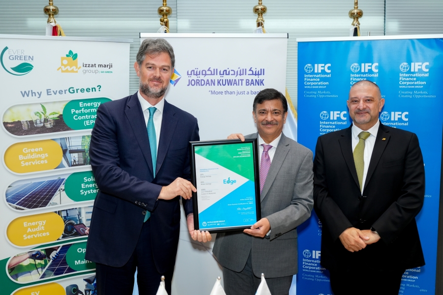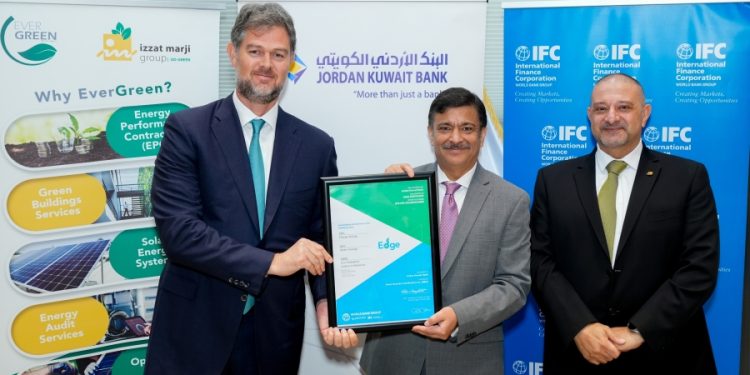 وبهذه المناسبة، أُقيم حفل بحضور الإدارة العليا للبنك الأردني الكويتي وممثلين عن مؤسسة التمويل الدولية ومجموعة عزت مرجي – إيفرجرين بصفتها المستشار المعتمد لمعيار “إيدج”، حيث سلّم السيد أفتاب أحمد، المدير الإقليمي لمؤسسة التمويل الدولية لمنطقة الشرق الأوسط وباكستان وأفغانستان، الشهادة رسمياً إلى البنك.