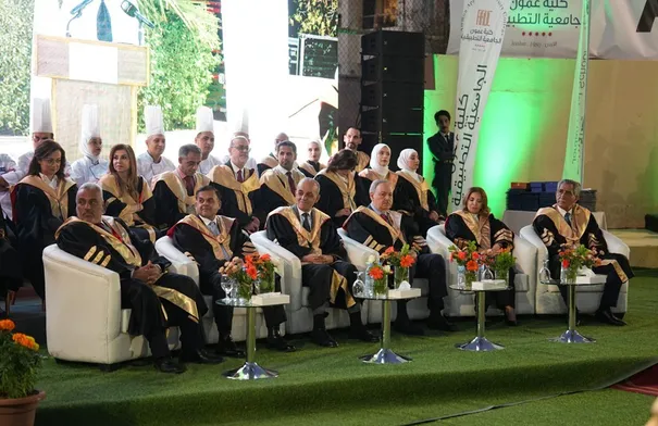 رعى وزير السياحة والآثار الدكتور عماد حجازين، أمس الثلاثاء، حفل تخريج طلبة كلية عمون الجامعية التطبيقية في تخصصات بكالوريوس الإدارة الفندقية، وبكالوريوس الإدارة الفندقية / إدارة أعمال الفعاليات، ودبلوم إدارة الفنادق، وفنون الطهي، بحضور رئيس هيئة المديرين للشركة الأردنية للتعليم الفندقي والسياحي العين ميشيل نزال، وأمين عام وزارة السياحة والآثار، ومدير عام دائرة الآثار العامة، ومدير عام هيئة تنشيط السياحة، ومديرعام صندوق كفاءات المستقبل، ومدير عام مؤسسة التدريب المهني وعدد من ممثلي الجمعيات السياحية وشركاء الكلية، وأعضاء مجلس الأمناء والهيئتين الأكاديمية والإدارية، وأهالي الخريجين.