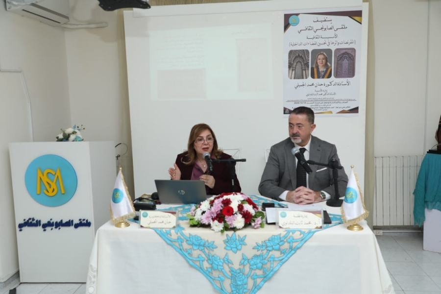وتناولت الدكتورة الجميلي خلال المحاضرة المفهوم المعماري للمقرنصات، واستعرضت دورها في تحسين جودة البيئة الداخلية من خلال تأثيرها في تحسين البيئة الداخلية للفضاء من الناحية الانشائية والشكل المعماري، فضلاً عن كونها عناصر زخرفية ذات قيم فنية وجمالية عالية والتي تعد من أبرز العناصر الزخرفية والهندسية في العمارة الإسلامية، كما ناقشت كفاءتها في معالجة المشكلات الصوتية داخل المساجد والقاعات بشكل عام، من خلال قدرتها على تشتيت الصوت والحد من ظاهرة الصدى، وشهدت المحاضرة حضور نخبة من الأكاديميين والمهندسين والأدباء والمثقفين من رواد الملتقى، وتخللتها جلسة حوارية ثرية لتبادل الرؤى والأفكار حول الموضوع.