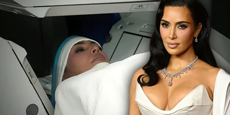وظهرت النجمة البالغة من العمر 45 عاما والأم لأربعة أطفال في حالة انفعالية وهي تخضع لفحص التصوير بالرنين المغناطيسي، ثم أخبرت عائلتها باكتشاف تمدد وعائي صغير في دماغها، مما أثار دهشة أختها كورتني التي علقت بصوت مرتفع. وأوضحت كيم أن الأطباء أرجعوا سبب هذا التمدد الوعائي إلى الضغط النفسي الشديد.