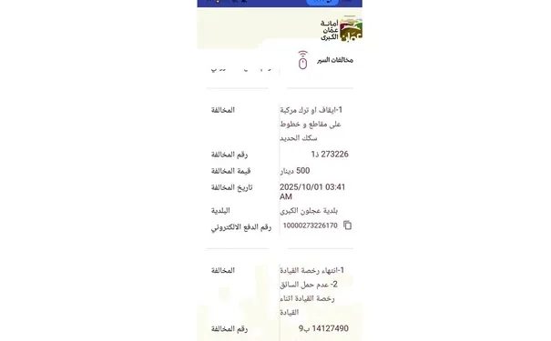 قال المواطن محمد فريحات صاحب المخالفة التي جرى تداولها عبر مواقع التواصل الاجتماعي ( الوقوف على خطوط السكك الحديدية ) بقيمة 500 دينار ان المخالفة لم تشطب حتى الان .