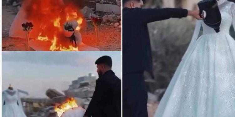 في مشهد مؤثر يلخّص عمق الفقدان في سوريا، أقدم شاب على إحراق بدلة زفاف خطيبته التي رحلت قبل أيام قليلة من موعد زفافهما.